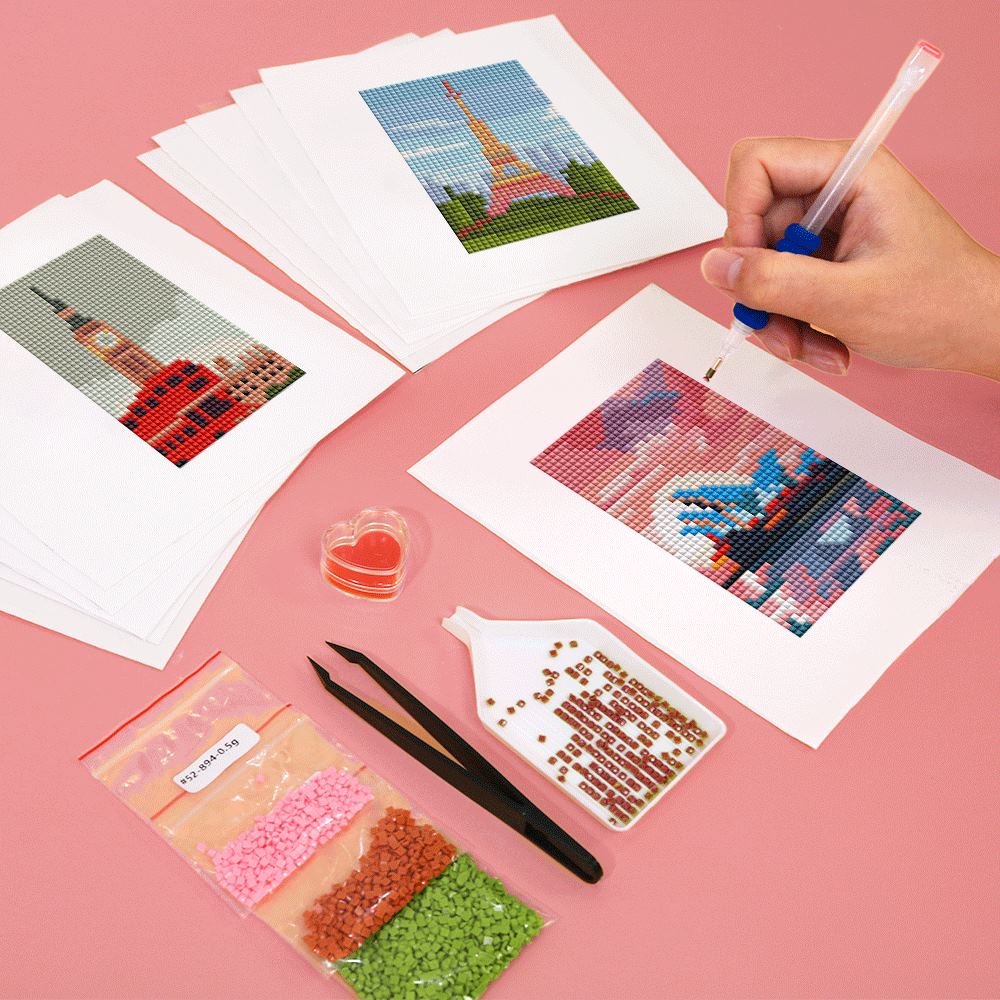Ta med skjønnheten til verdensbyer innendørs og forvandle boarealet ditt til et kulturelt mesterverk med våre fantastiske 10 mini-Diamond Painting- Sett med kjente byer. Dette settet er perfekt for reise- og kunstelskere, og inneholder ti små Diamond Painting lerreter, hver med en unik og detaljert design av en kjent by. Med hvert lerret som måler 15x18 cm, er disse minimesterverkene ideelle for å tilføre et snev av verdslig sjarm til ethvert hjørne av hjemmet ditt.
