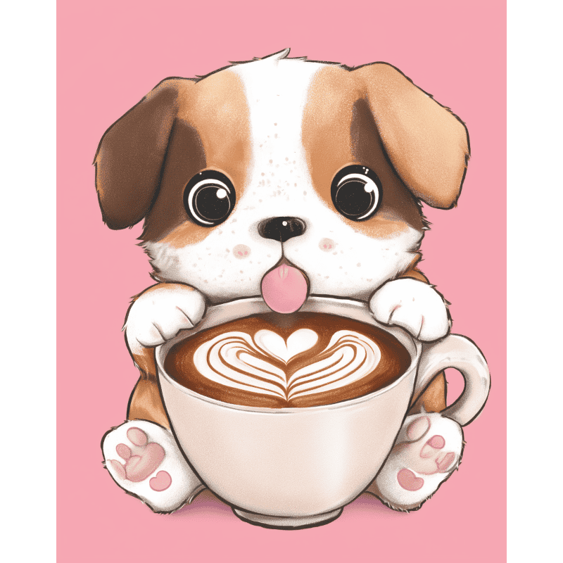 Søt valp med cappuccino